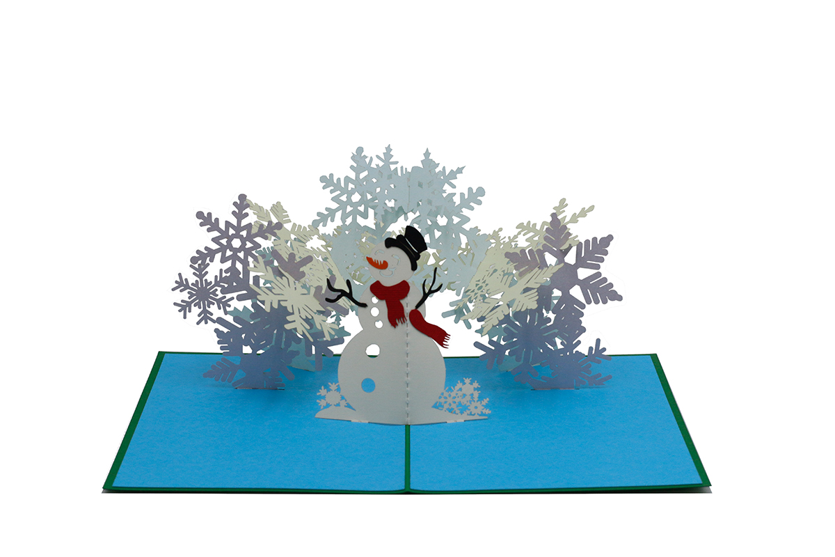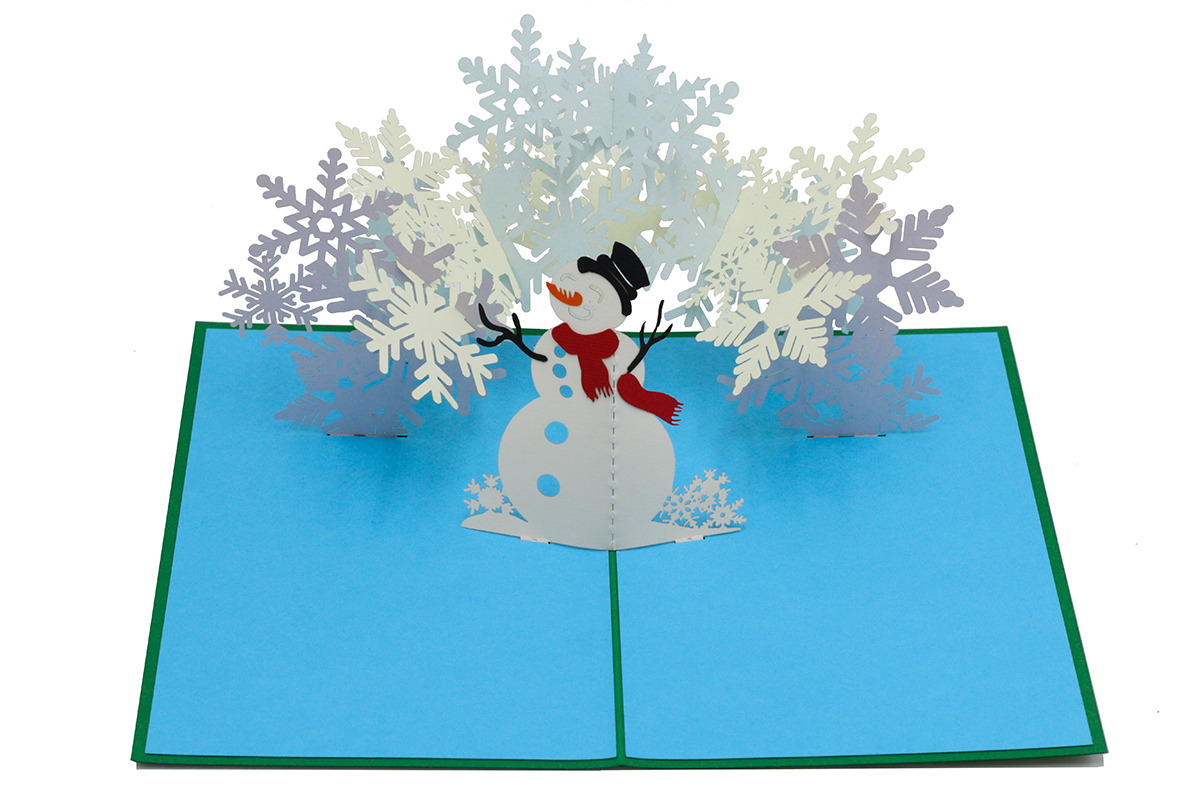 Die besondere 3 D Pop up Karte für Weihnachten, die sich beim Aufklappen entfaltet. Dieser Schneemann findet sicher einen Platz in der Weihnachtdekoration.