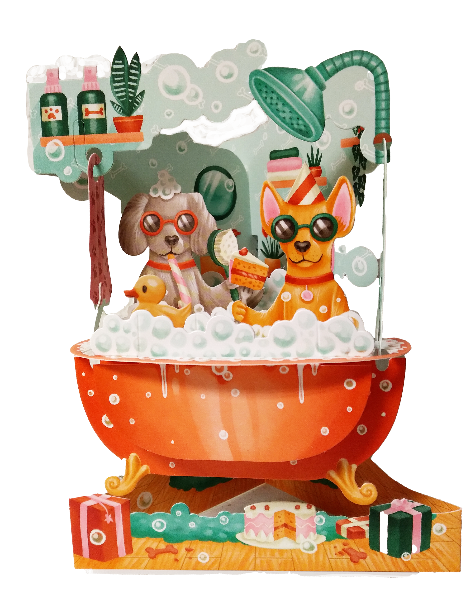 aufwendig gestaltete 3 D Pop-Up Swing Karte von Santoro London bei der sich jedes Teil bewegt. Auf der Rückseite ist Platz für persönliche Grüße.